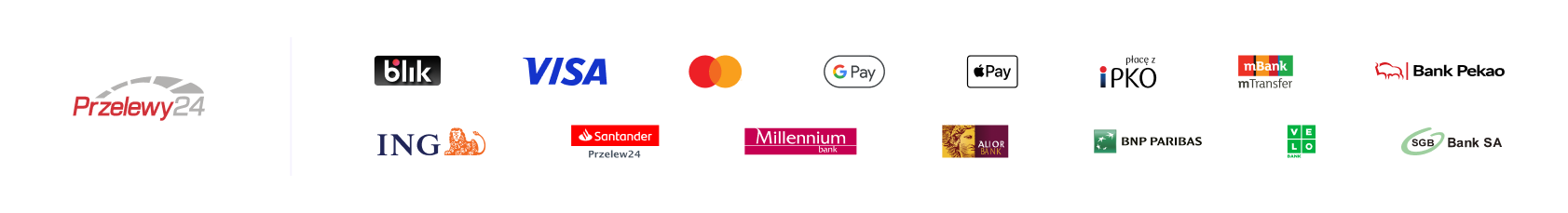 Przelew na konto bankowe – po złożeniu zamówienia towar zostanie dla Ciebie zarezerwowany, a na swój adres e-mail otrzymasz numer rachunku bankowego, na który należy przelać właściwą kwotę. Przelew możesz wysłać ze strony internetowej swojego banku, w placówce banku lub na poczcie. Wybieranie tej metody wydłuży całkowity czas realizacji zamówienia o czas potrzebny na zaksięgowanie Twojej wpłaty.