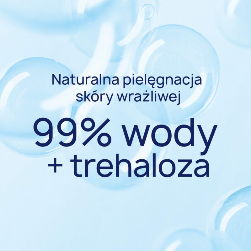 99% to oczyszczona woda z dodatkiem trehalozy, która łagodzi i nawilża skórę.